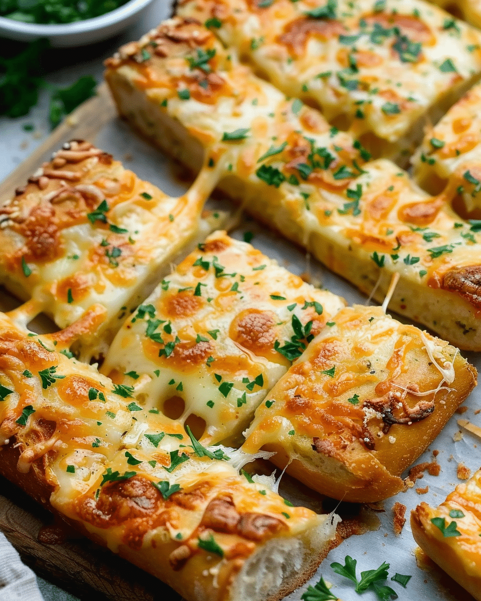 This cheesy garlic bread is crispy on the outside, soft and buttery inside, and topped with a flavorful blend of garlic, mozzarella, and Parmesan. Perfect as a side for pasta, soup, or even as a snack, it’s quick to make and always a crowd-pleaser.